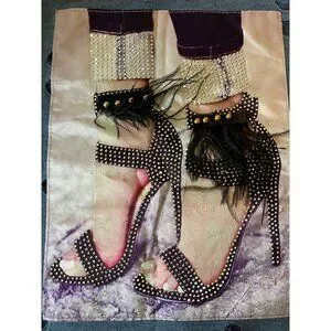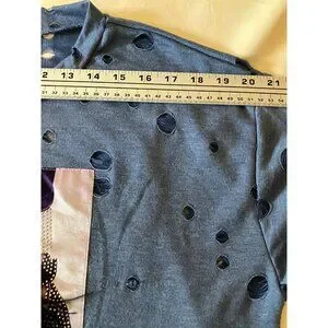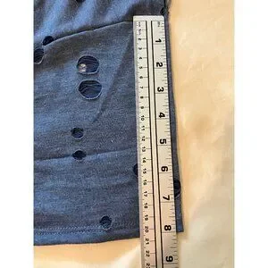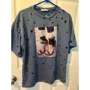 LOVE J Blue Blouse Top T-shirt w Holes Distressed Heels Shoes Pop Art Trendy S