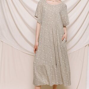 Step out in style with this elegant floral beige dress. Perfect for any occasion, this dress offers a comfortable fit and a chic look. New from high end boutique.