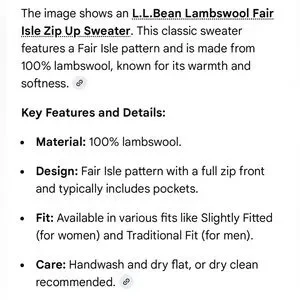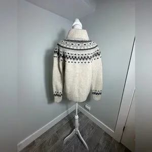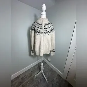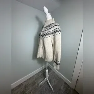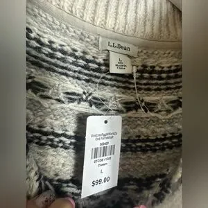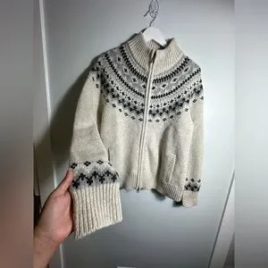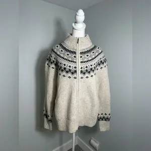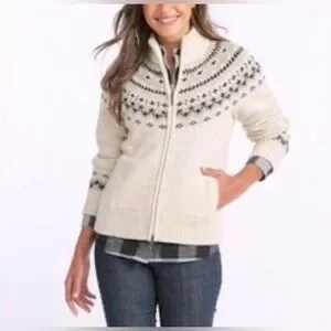 NWT L.L. Bean Fair Isle Classic Rag Wool Grandmacore Zip Cardigan Size Large