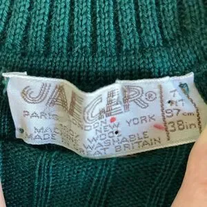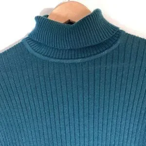 Jaeger Vintage Forest Green Wool Ribbed Knit Pullover Turtleneck Size M Sweater