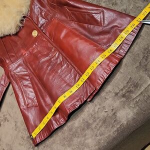 Vintage 70s Elegant Leather Women's Jacket Penny Lane Fur Collar / S / Burgundy