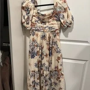 Only worn once! Chic long sleeve dress with floral pattern. Features cream and blue tones. Perfect for stylish outings. So flattering, can be dressed up or down. Comes from smoke free home and was very well cared for! Only worn