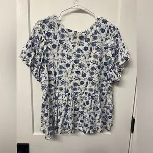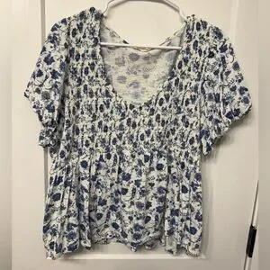 Lucky Brand Blue and White Floral Blouse