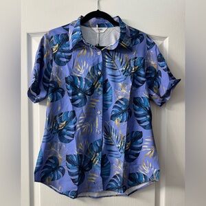 Mizvsitrd Women’s Hawaiian Floral Tropic Print Short Sleeve Soft Button Up top