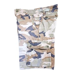 GAP Camo Cargo Shorts Mens 33 Adjustable Waist Y2K Baggy Hits Below Knee