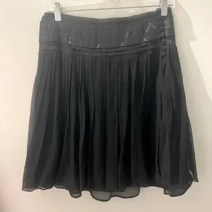 Vintage Vertigo Paris Silk Pleated Skirt w/ Ribbon Waistband – Size 4, W 29-30”