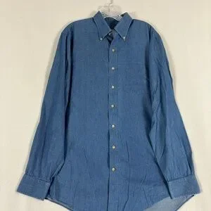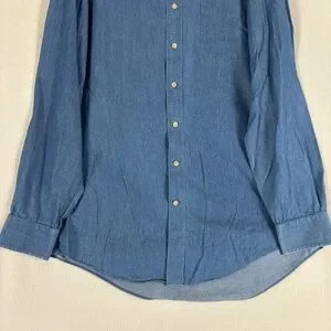 Lands’ End Button Down Denim Shirt Soft, Oxford Collar, Mid Blue
