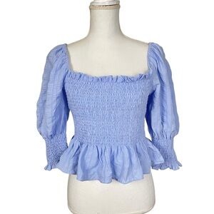 En Saison Smoked Blouse Light Blue Size Large