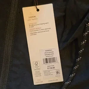 Women's Calia Hooded Windbreaker Jacket L Black with White Drawstrings