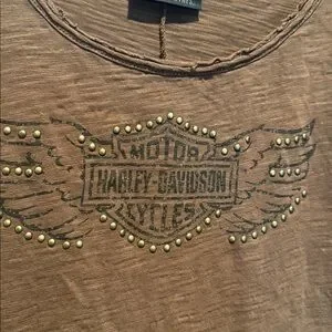 Chic brown blouse with Harley-Davidson emblem. Ideal for casual wear.