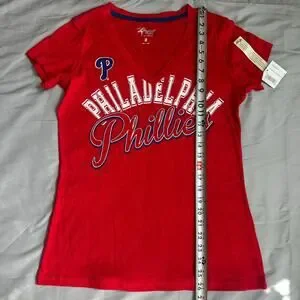 G-III 4her Red, MLB Philadelphia Phillies, V-Neck, Short Sleeve T-Shirt NWT- M