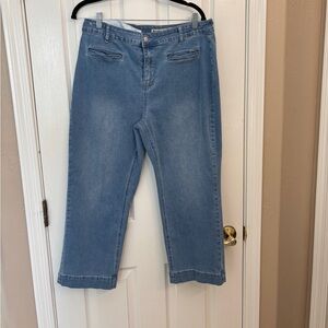 Luvamia XL Blue Jeans Cropped with front pockets button fly jeans