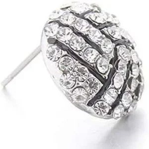 Volleyball Sports Stud Earrings - Rhinestone Crystal Bling, Athletic Fashion