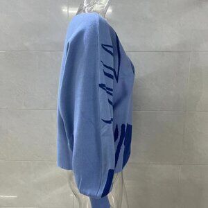 Modern Blue Abstract One Shoulder Pullover Sweater