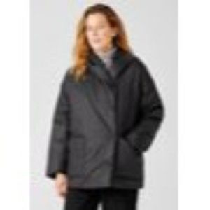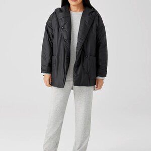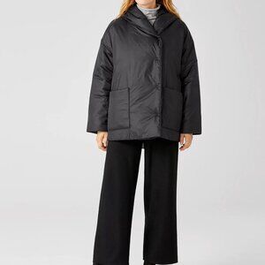 Eileen Fisher PL LP Petite Large Eggshell Recycled Nylon boxy puffer coat black