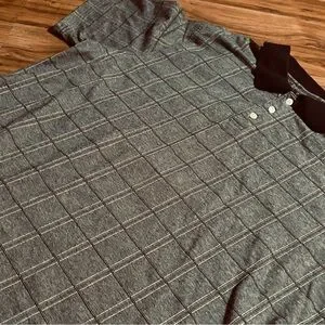 Open Trails men's windowpane pattern polo size XXLarge pre-owned in good condition. Stored clean in a clean smoke free home. Colors are gray and black with an off white trim.
