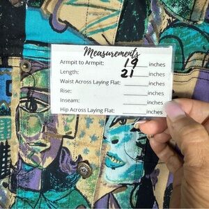 Mirror Image Woman’s Vintage Denim Jacket. Size Medium. Excellent Condition. Approximate Size Measurements Are In The Photos. Features A Unique And Vibrant Picasso-Inspired Art Design, With A Button-Up Style And Stretchy Material For Added Comfort. 95% Cotton 5% Spandex. Black, Purple, Tan, Blue, Teal, White, And Green Hues Are Represented In This Colorful, Art Deco Design. Fold Down Collar And Rolled Up Sleeves. 2 Small Pockets On The Front Top. Beautiful Buttons Down The Front. Unique And Whimsical. Flattering And Feminine Cut.