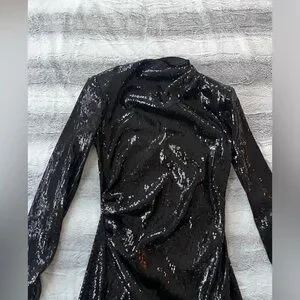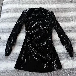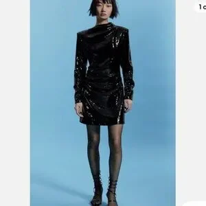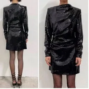 BLOGGER FAV ZARA SHOULDER PAD DRAPED Sequins DRESS