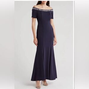 Marina Sequin Illusion Lace Trumpet NWT Size M ))This elegant navy evening gown is perfect for formal occasions. Its sleek design offers a sophisticated look. Gown | Nordstromrack