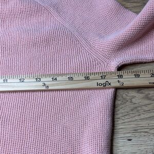 Soft pink crew neck sweater. Features a cozy hood and ribbed cuffs. Ideal for layering. Very good condition. Measurements are in photos