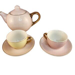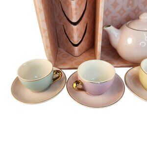 FAO Schwarz Ceramic Childrens Tea Set 10pc Pastel Hand Glazed Gold Accent Tea Pa
