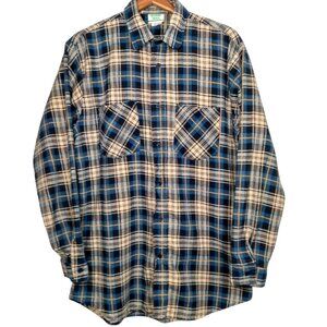 Vitage Ozark Trail Flannel Shirt Men Medium Blue Yellow Plaid Clssic Work Grunge