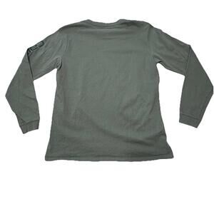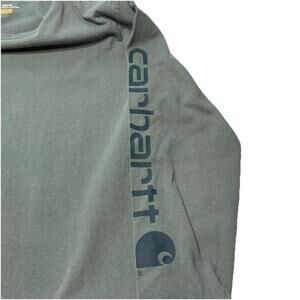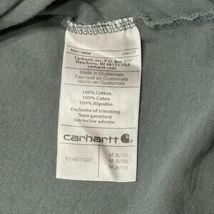 The Carhartt Women's Medium Shirt in Balsam Green features a graphic logo, making it perfect for a casual occasion. Made of 100% cotton, this pullover shirt with a crew neckline and casual sleeve design is suitable for all seasons. With a blend of modern and outdoor themes, this shirt is great for activities like hiking, running, and fishing, showcasing the brand's rugged and durable style. Machine washable and in good condition from the 2010-2019 timeframe, this basic shirt is a versatile addition to any wardrobe.