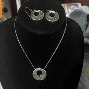 This elegant silver necklace and earring set adds a touch of sophistication to any outfit. Perfect for any occasion. Some wear noted as show in pictures