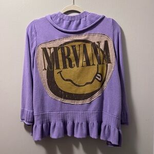 Nirvana purple cardigan up cycle ruffles knit handmade women large