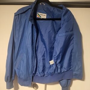Stay stylish with this vintage blue windbreaker jacket. Perfect for casual outings, it offers both comfort and a classic look.