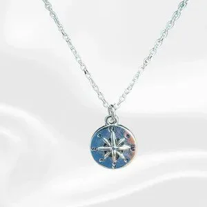 Silver Compass Star Pendant Necklace – Dainty Chain Celestial Jewelry