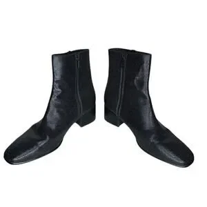 Leather: Cowhide. Leather lining. Stacked block heels. Zip closure at side. Square toe. Leather-and-rubber sole. Lined. Tonal stacked leather heel. Tonal hardware.