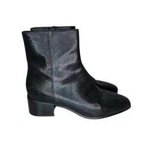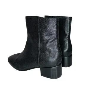 Rag & Bone Ashlen Black Pebbled Leather Midi Ankle Boots Square Toe Size 9