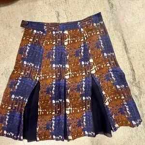 Tory Burch Hull Pleated Skirt, size 4. In good pre-owned condition. 71% wool, 29% silk Zip & button closure Pleated Approximate measurements 28.5” waist 36” hips 22” length