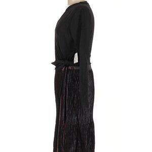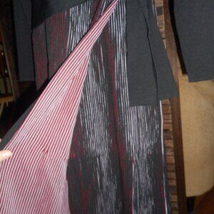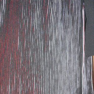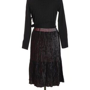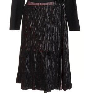 New with tags, Nic + Zoe black long sleeve sweater dress with pleat skirt. Pleat skirt has pops of color throughout, red, pink, white. Very pretty. Great for fall. Medium to heavy weight knit. Excellent quality! Size Medium. Faux wrap style. Slip on. Appx. measurements noted below taken laying flat: