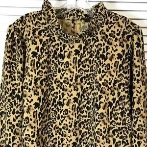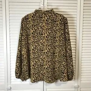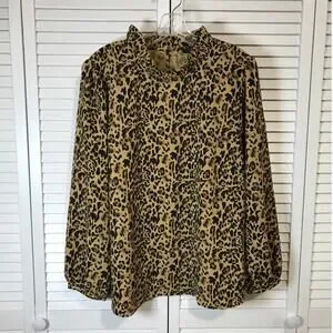 J. Crew Leopard Print Ruffled Neck Long Balloon Sleeve Blouse 2X