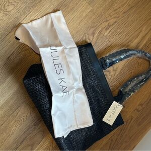 Discover elegance with the Jules Kae Black Woven Vegan Tote. Perfect for any occasion, this stylish bag combines fashion with practicality. NWT and Dust Bag!