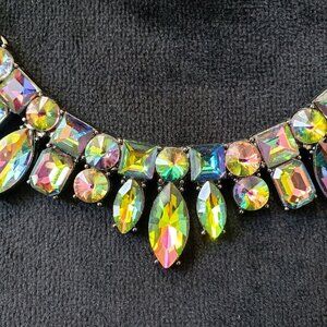 Womens Fashion Multi Tone Oil Spill Crystal Beaded Necklace with Lobster Clasp.