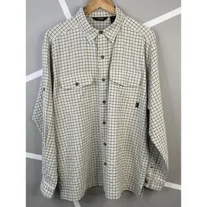 LL Bean Outdoors Textured Long Sleeve Shirt Camping Men’s L Reg Khaki Check