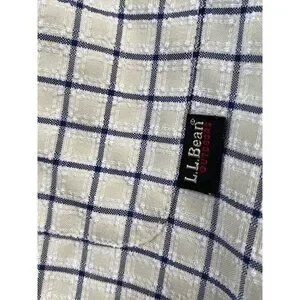 LL Bean Outdoors Textured Long Sleeve Camping Men’s L Reg Beige Khaki Check