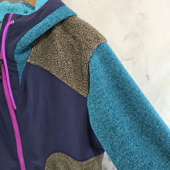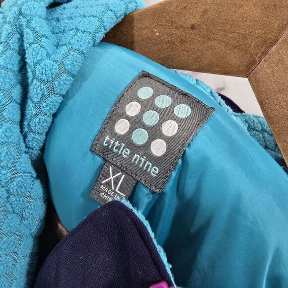 Title Nine Jacket Womens XL Blue Gray Fleece Zip Hood Coat Sherpa Beaten Path