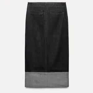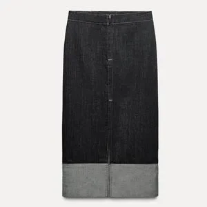 Zara Denim Slit Midi Skirt Dark Blue Zip Hi Waist Women’s Small 9632/271 Y2K 90s