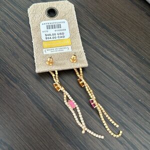 These stunning drop earrings from Anthropologie are brand new and ready to elevate your accessory collection. Measuring 3 inches in length and crafted with 14k gold plating, they add a touch of elegance to any outfit.