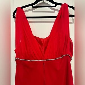 This stunning red evening gown is perfect for any formal occasion. Its elegant design and vibrant color make it a standout choice for your wardrobe.