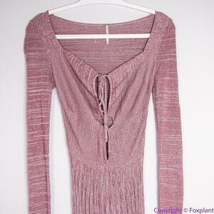 NEW Free People Pink Long Sleeve Knit Flare Pleated Lady Luck Jumpsuit, size S