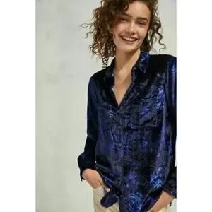 Anthropologie Pilcro Mara Relaxed Velvet Button-down