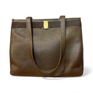 Vintage Salvatore Ferragamo Brown Embossed Leather Vara Tote