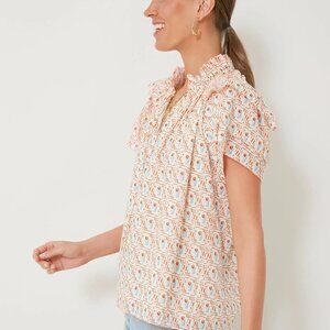 Making a classic silhouette feel fresh, the Tulip Millie Top is here to upgrade your closet this season. In a stunning all-over floral print that packs plenty of subtle femininity, this style gets a special touch from all those ruffles — both as an elegant stand collar and layered at the sleeves for a fluttering effect. This darling blouse is about to become a go-to in your outfit rotation due to its versatility since it pairs perfectly with casual shorts, white denim, and flowing skirts alike!