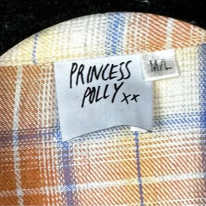 Princess Poly Medium Large Flannel Shirt Orange Blue Women Comfy Soft Grunge