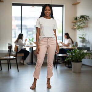Kate & Mallory Pink Cropped Jeans with Ruffle Hem Size 8 Pink Denim